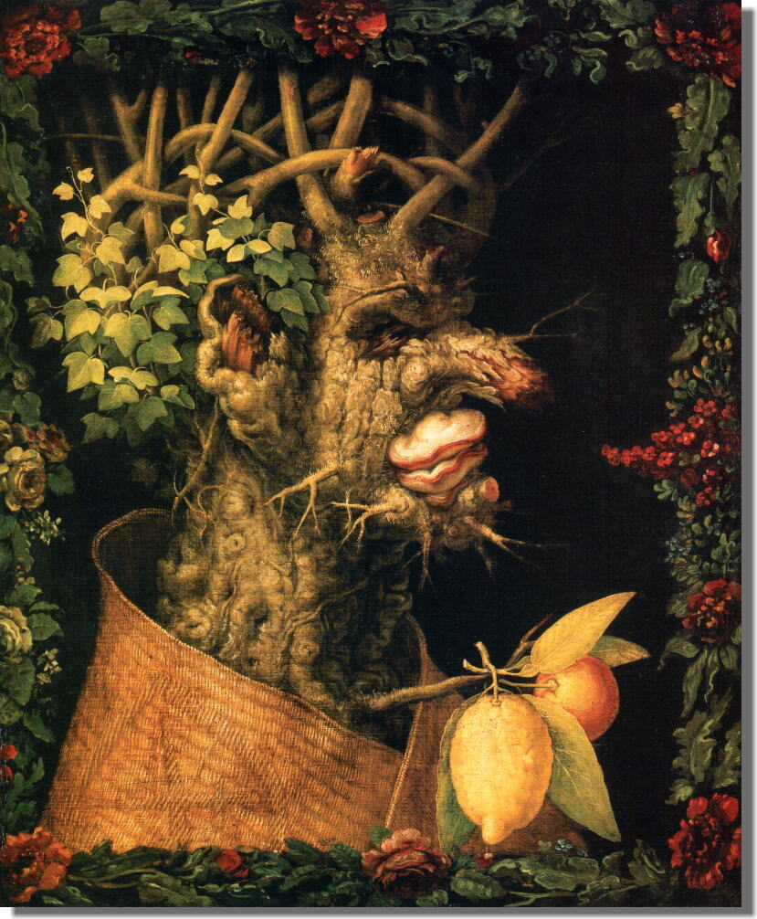 季節の花や果物で人物を描くことによって永遠の繁栄を願うものでアルチンボルドの代表作でもある。